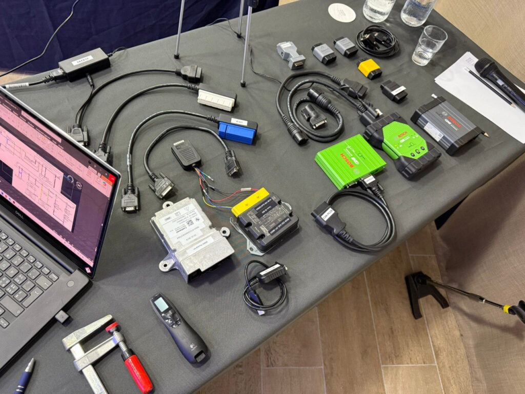 Los ingenieros Massimo Dalessi (Dalessi Engineering, Suiza) y Sixto Troya (Servicios de Ingeniería Forense, España) guiaron a los participantes en el uso del sistema Bosch Crash Data Retrieval (CDR), desde la instalación del software hasta la lectura de módulos de airbag por conexión directa (D2M) u OBD.